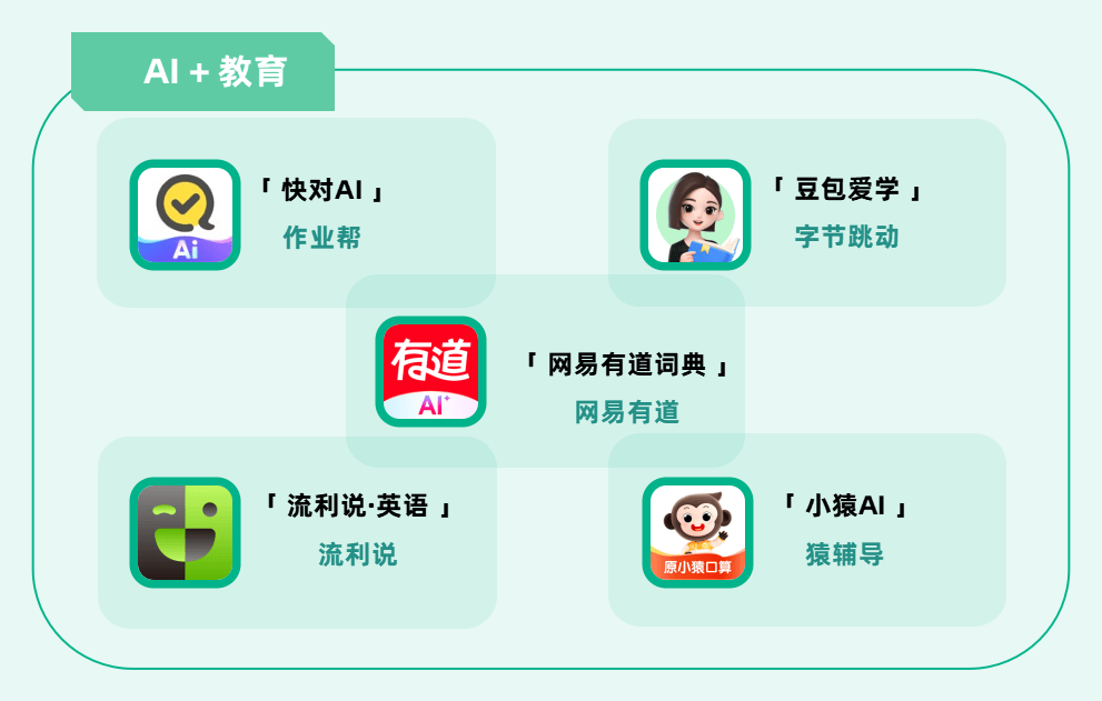 「快对AI」「豆包爱学」「小猿AI」「网易有道辞书」「流利说·英语」等多款发力AI教育赛道的产物强势进榜。AI手艺已正在浩繁教育场景中实现落地。「DeepSeek」掀起的手艺改革海潮正正在向更多财产席卷。据领会「纳米AI搜刮」于2024年11月正式对外发布,该款App还将AI动做捕获取体感逛戏相连系,并帮力其快速完成数智化升级。正在国内?
